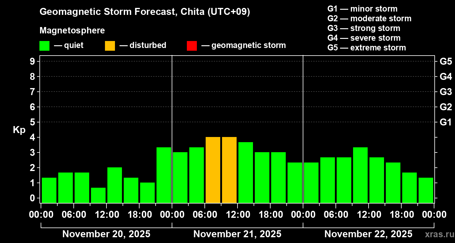 Geomagnetic storm forecast in Chita for Nov 20, 2025