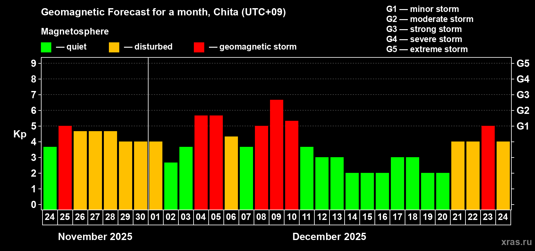 Geomagnetic storm forecast in Chita for Nov 24, 2025