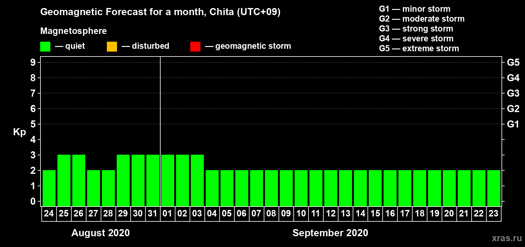 Geomagnetic storm forecast in Chita for Aug 24, 2020
