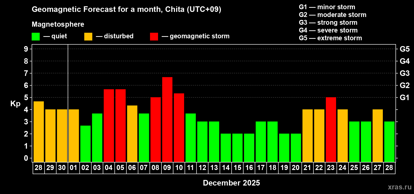 Geomagnetic storm forecast in Chita for Nov 28, 2025
