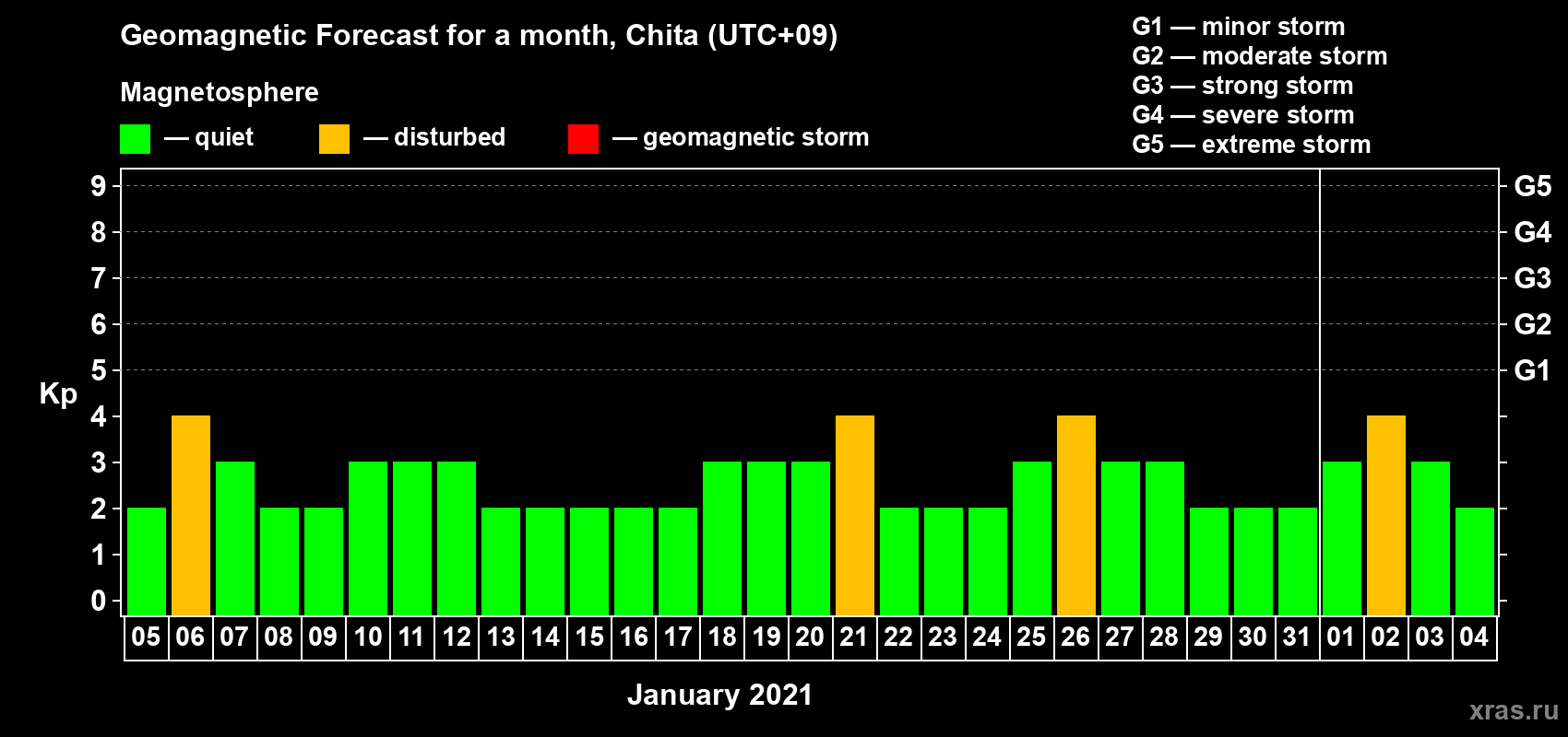 Geomagnetic storm forecast in Chita for Jan 05, 2021