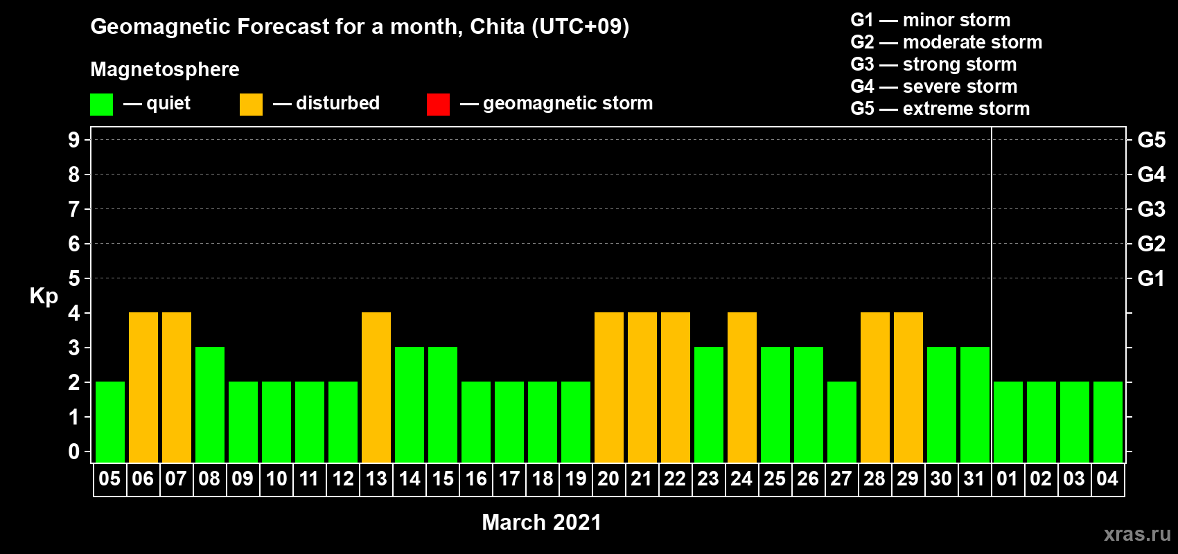 Geomagnetic storm forecast in Chita for Mar 05, 2021