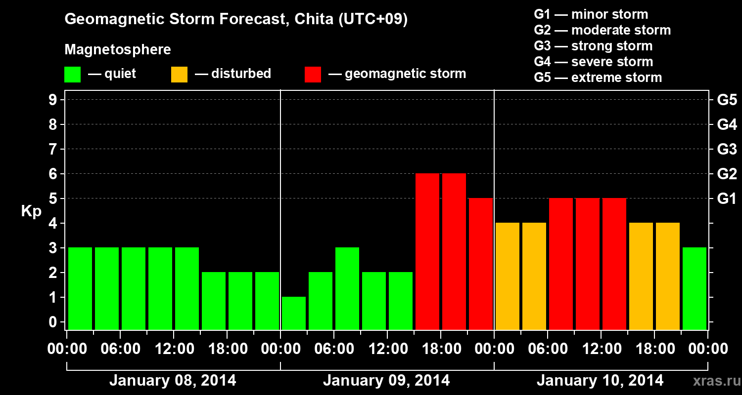Geomagnetic storm forecast in Chita for Jan 08, 2014