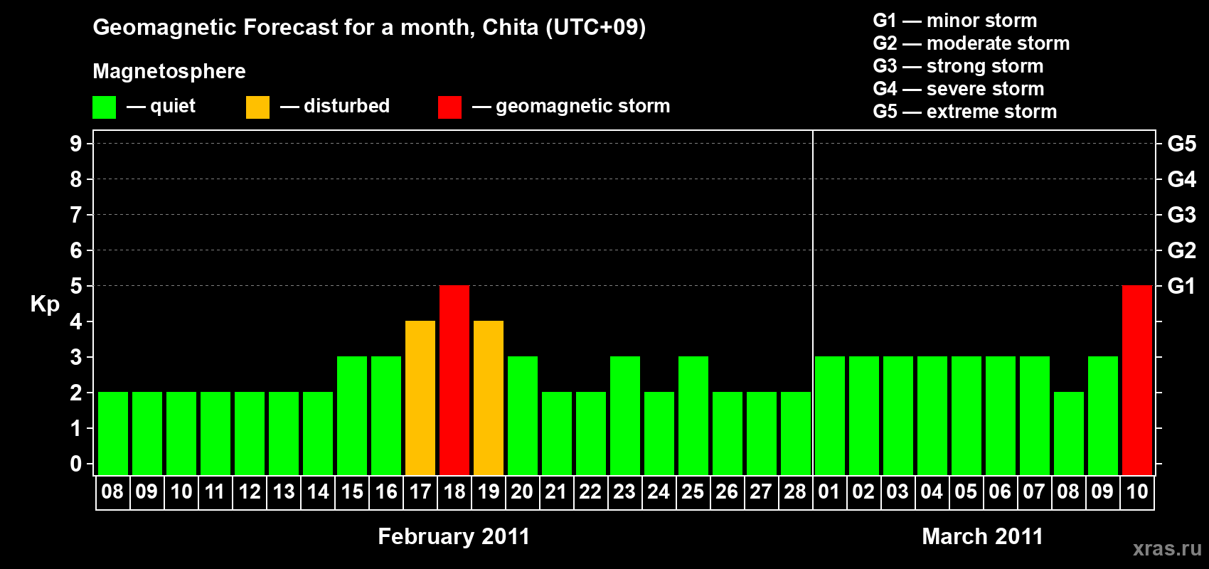 Geomagnetic storm forecast in Chita for Feb 08, 2011