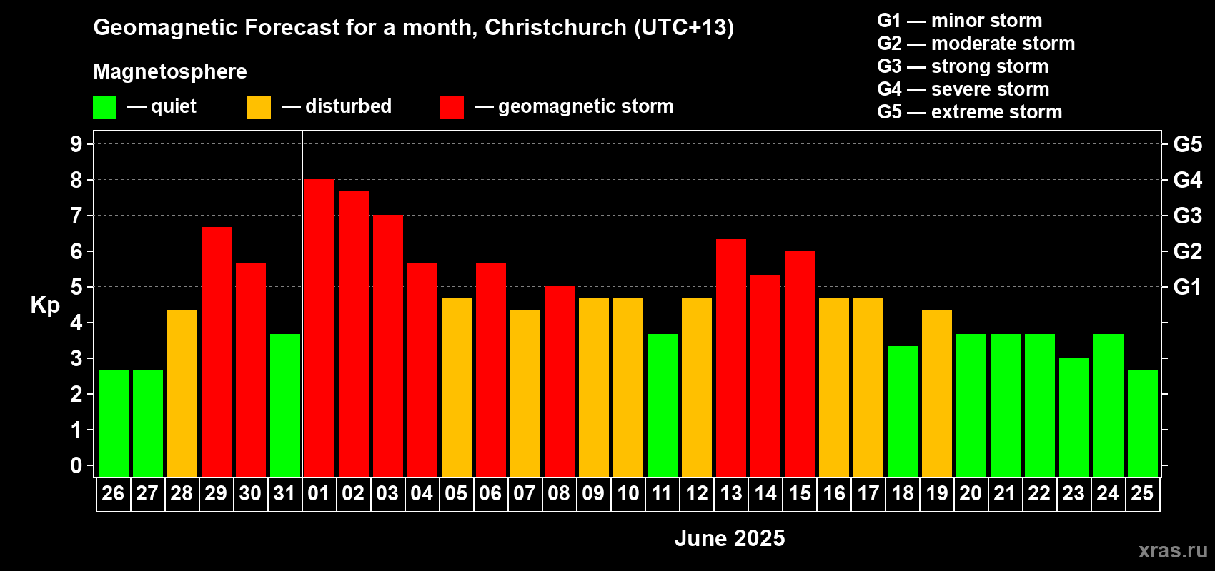 Geomagnetic storm forecast in Christchurch for May 26, 2025