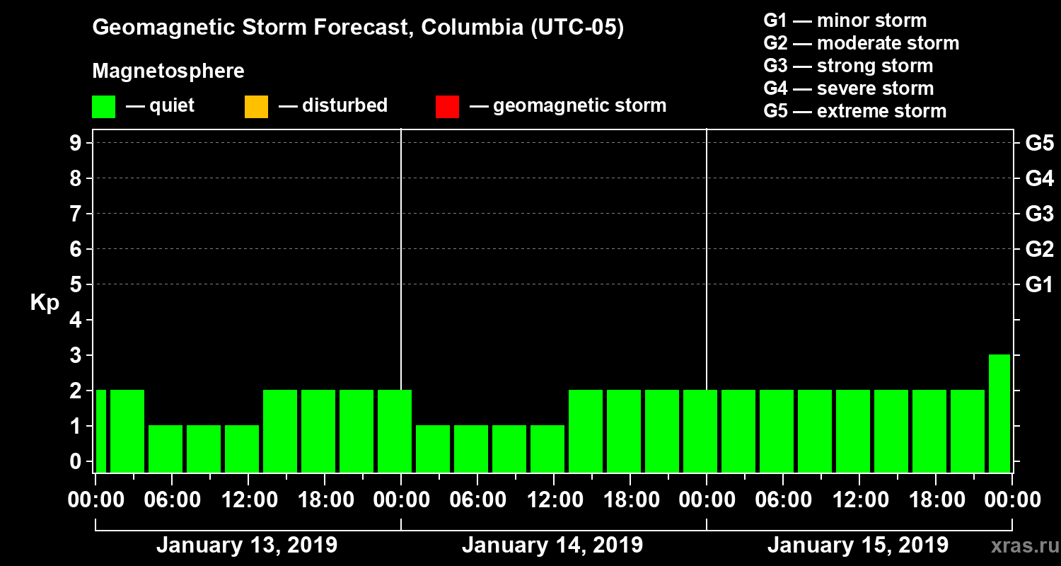 Geomagnetic storm forecast in Columbia for Jan 13, 2019