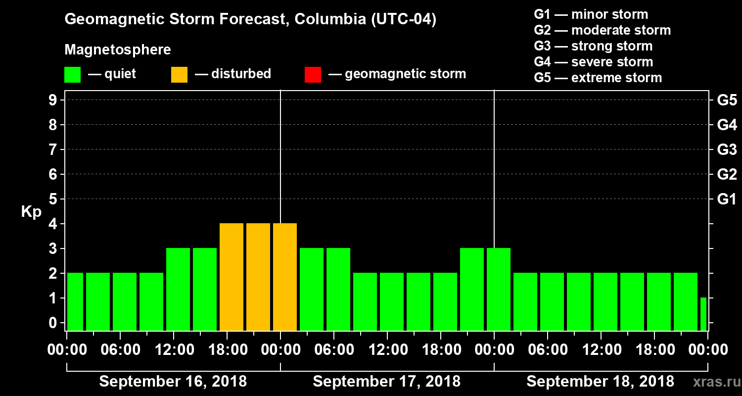 Geomagnetic storm forecast in Columbia for Sep 16, 2018
