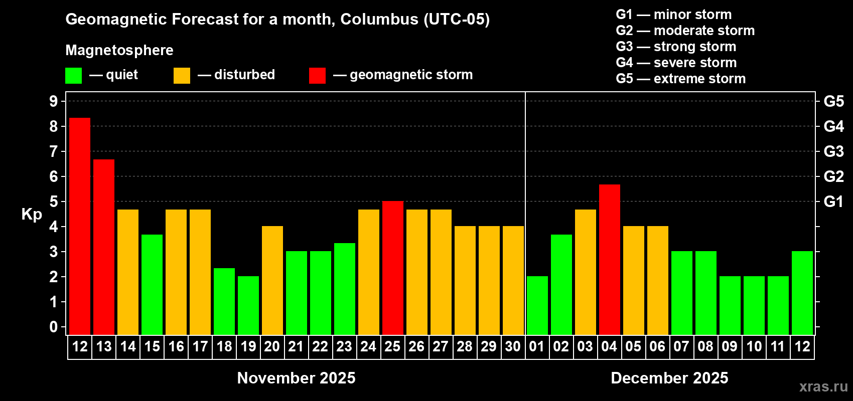 Geomagnetic storm forecast in Columbus for Nov 12, 2025