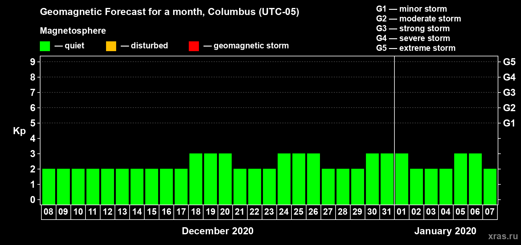 Geomagnetic storm forecast in Columbus for Dec 08, 2019