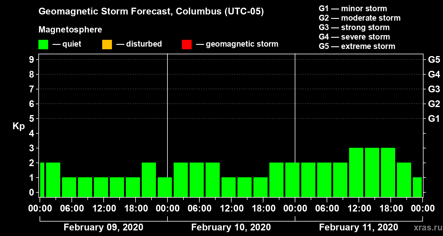 Geomagnetic storm forecast in Columbus for Feb 09, 2020