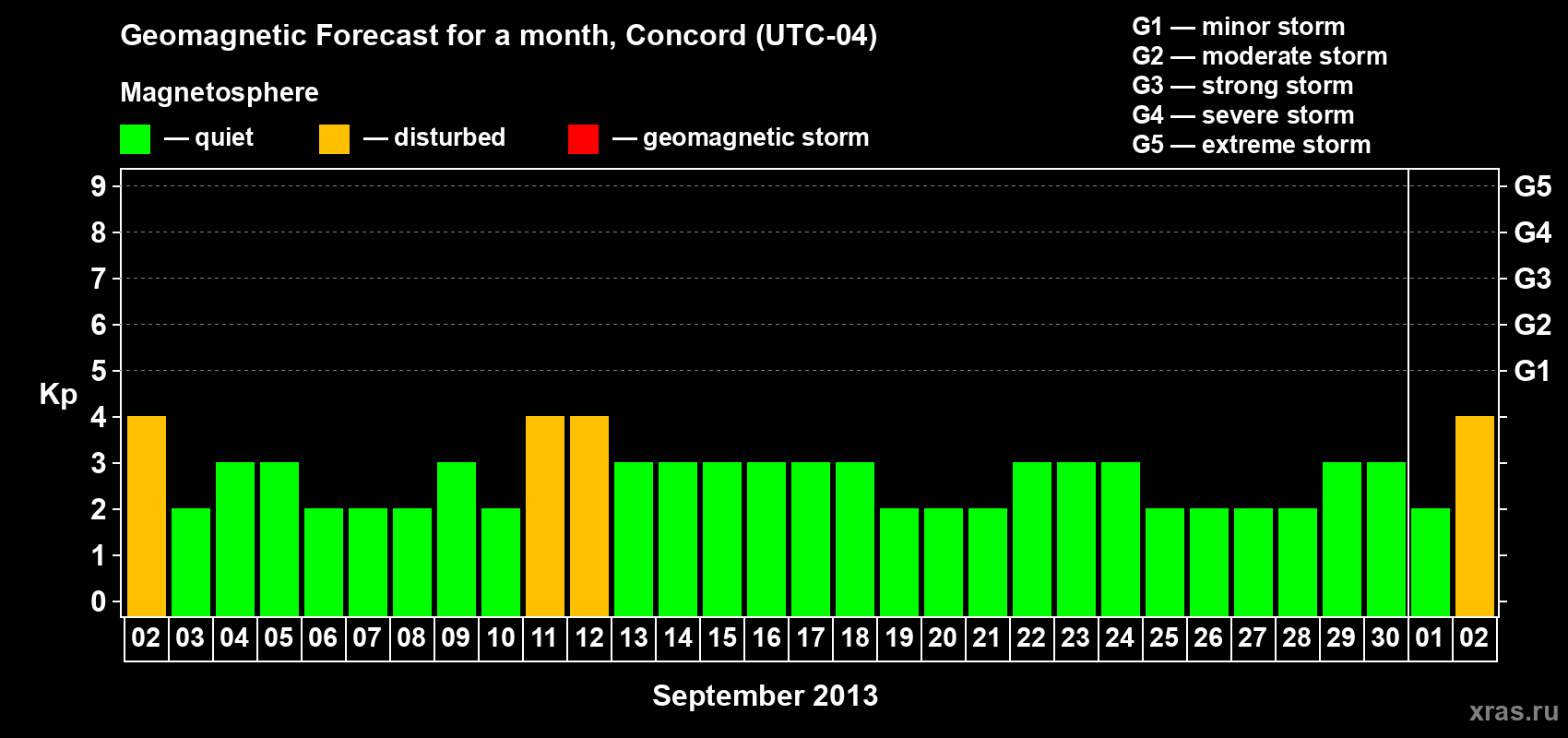 Geomagnetic storm forecast in Concord for Sep 02, 2013