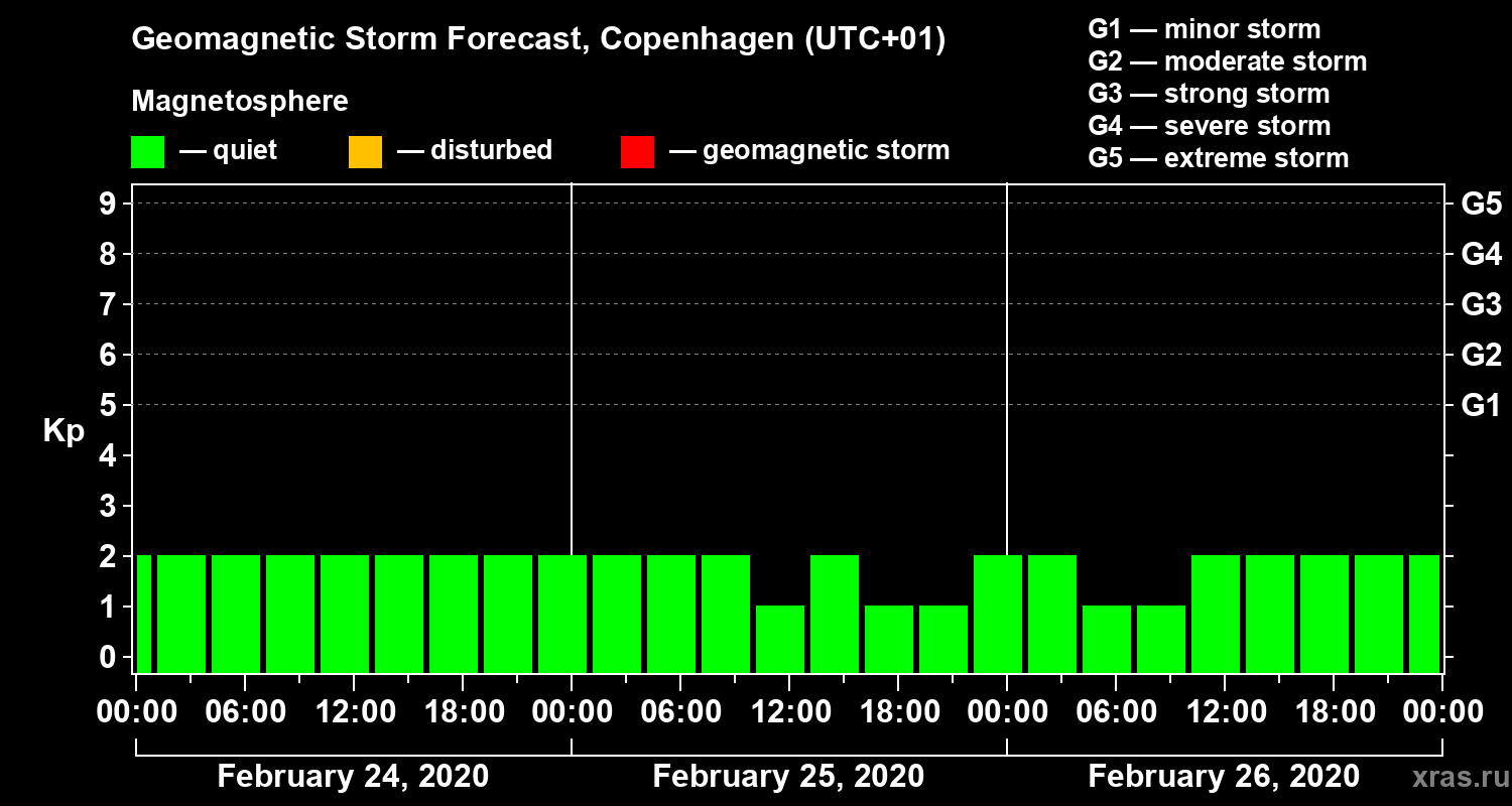 Geomagnetic activity forecast in Copenhagen — Feb 24, 2020