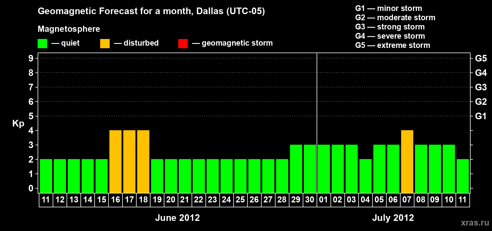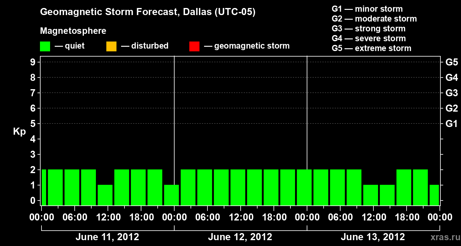 Geomagnetic storm forecast in Dallas for Jun 11, 2012