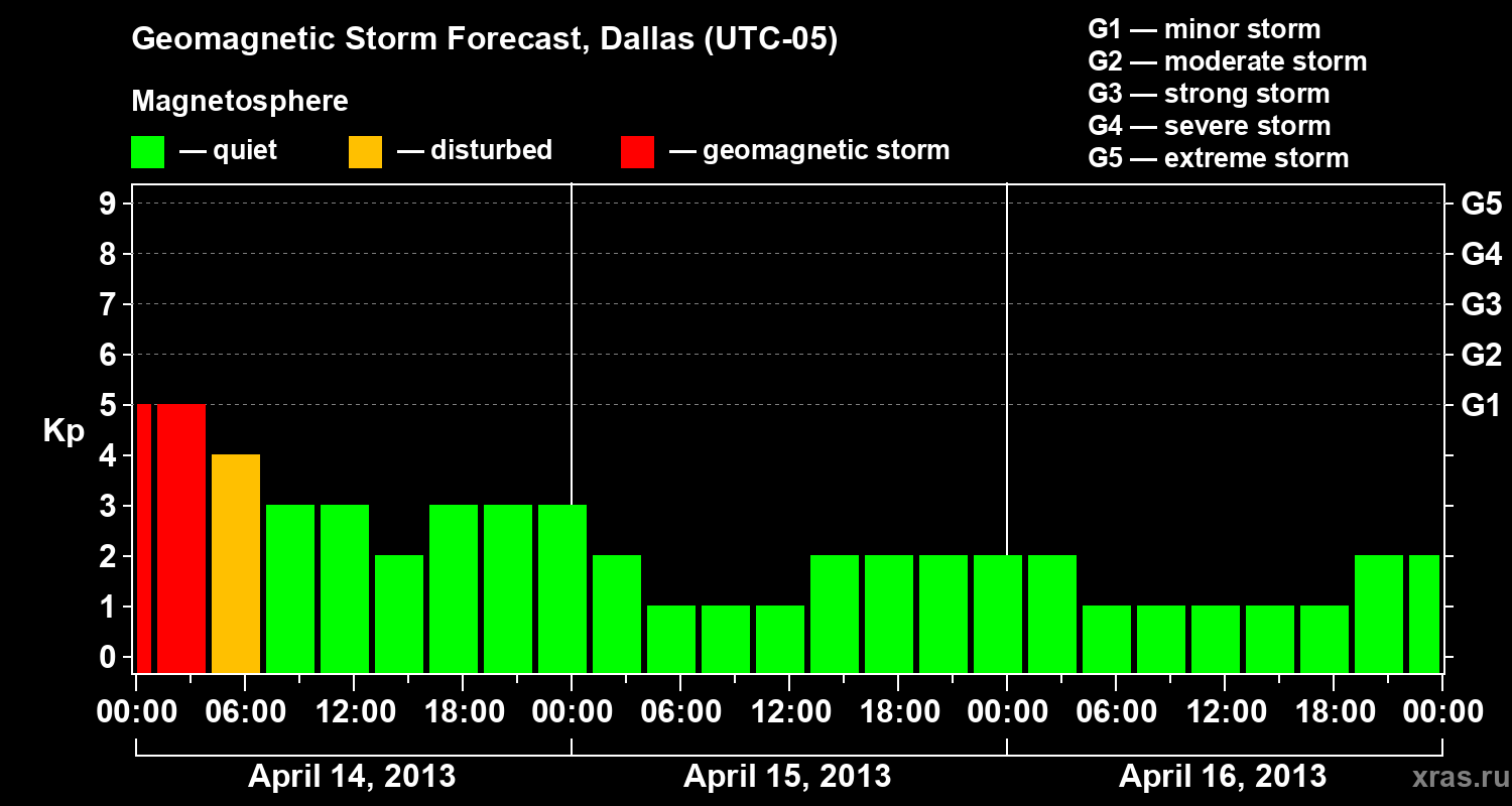 Geomagnetic storm forecast in Dallas for Apr 14, 2013