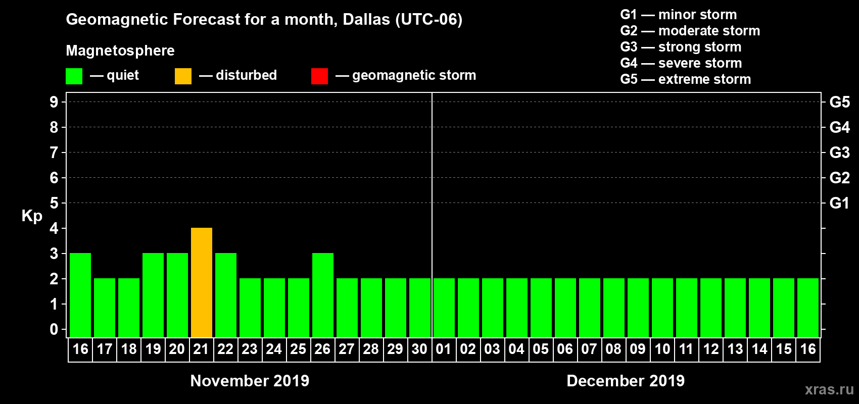 Geomagnetic storm forecast in Dallas for Nov 16, 2019