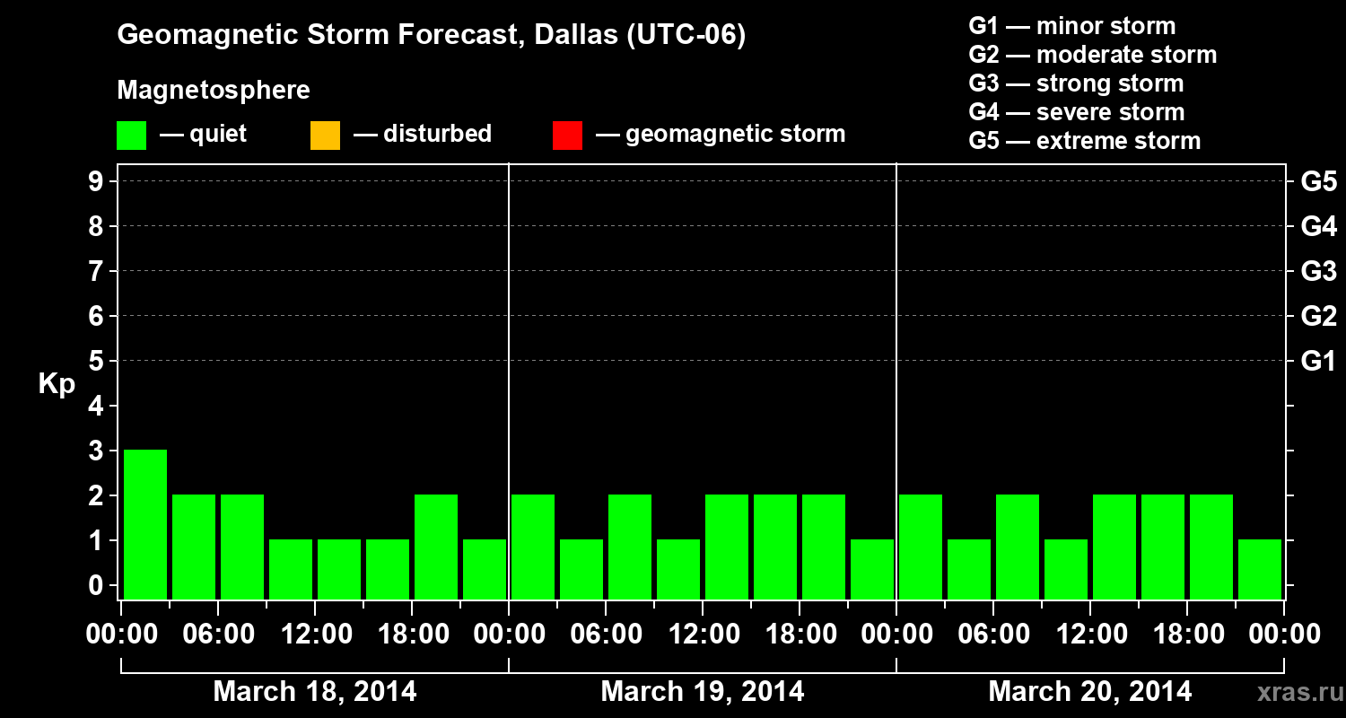 Geomagnetic storm forecast in Dallas for Mar 18, 2014