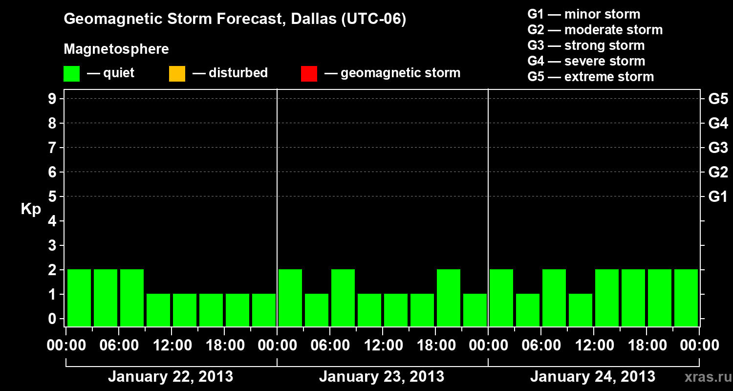 Geomagnetic storm forecast in Dallas for Jan 22, 2013