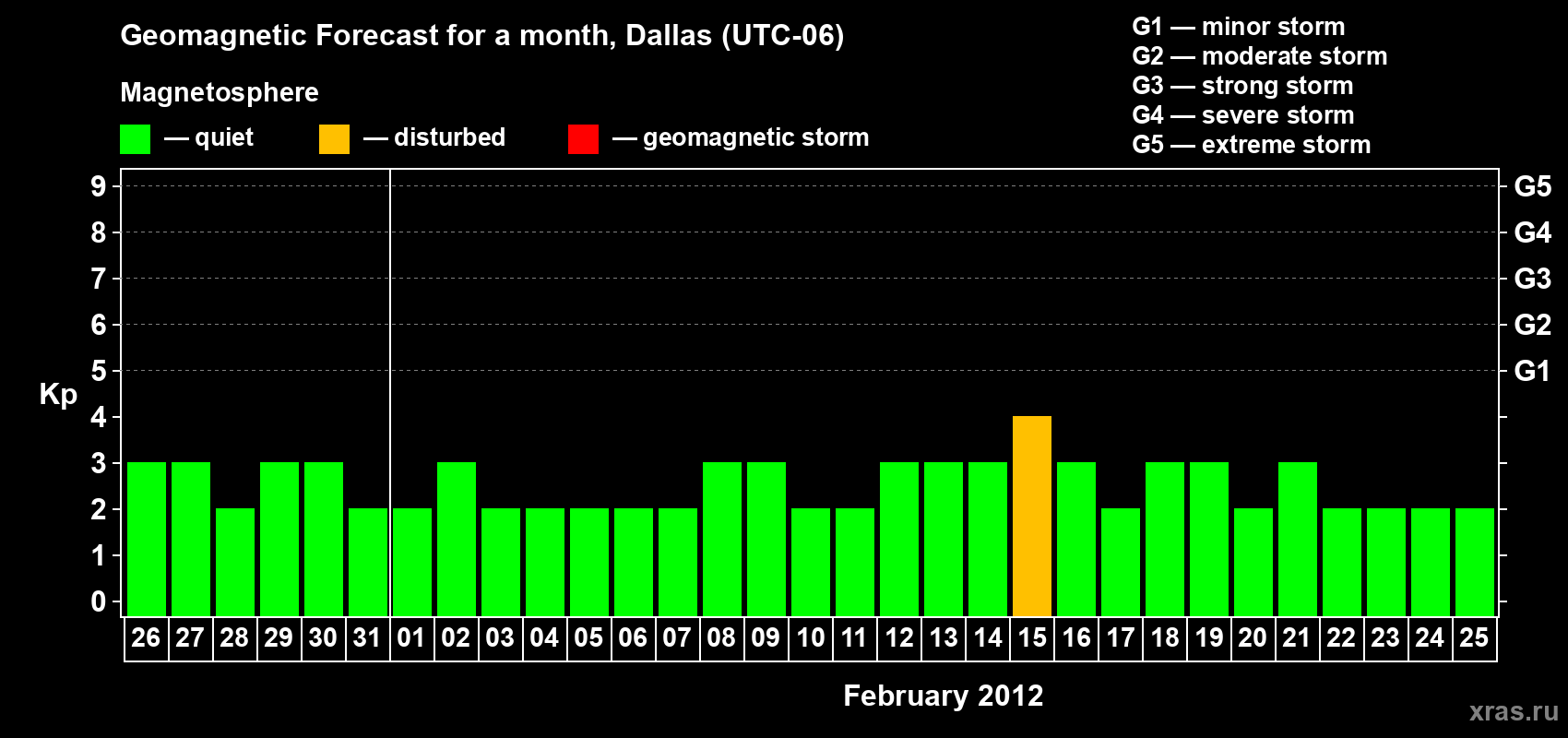 Geomagnetic storm forecast in Dallas for Jan 26, 2012