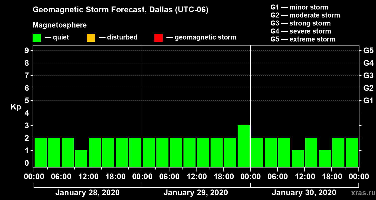Geomagnetic storm forecast in Dallas for Jan 28, 2020