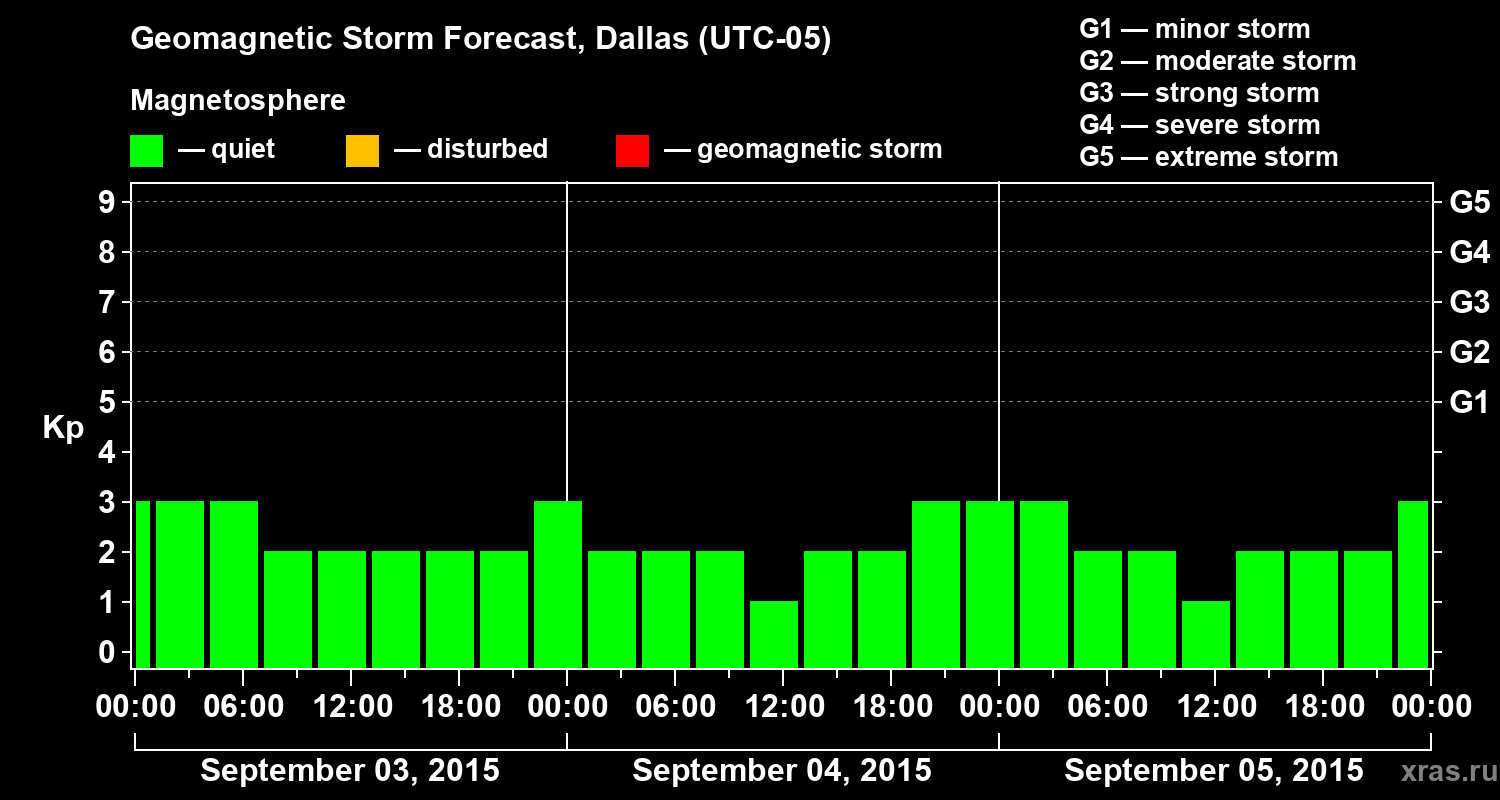 Geomagnetic storm forecast in Dallas for Sep 03, 2015