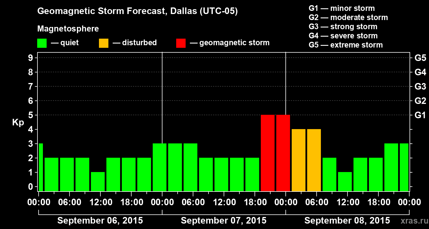 Geomagnetic storm forecast in Dallas for Sep 06, 2015