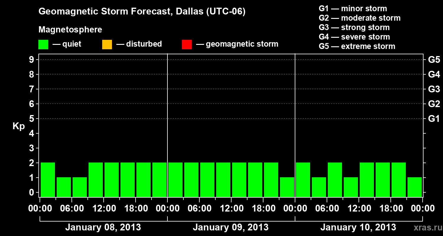 Geomagnetic storm forecast in Dallas for Jan 08, 2013