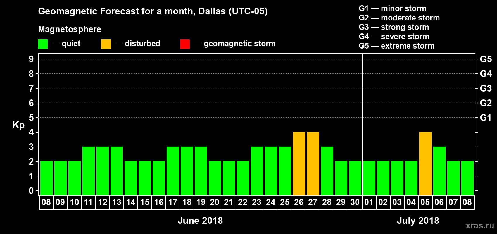 Geomagnetic storm forecast in Dallas for Jun 08, 2018