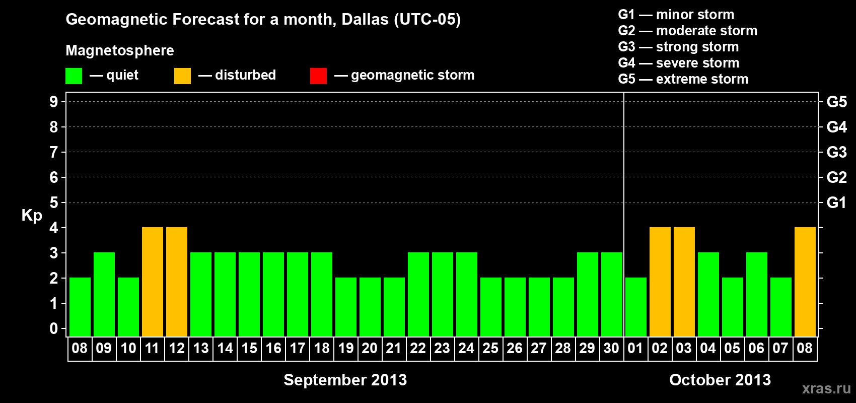 Geomagnetic storm forecast in Dallas for Sep 08, 2013