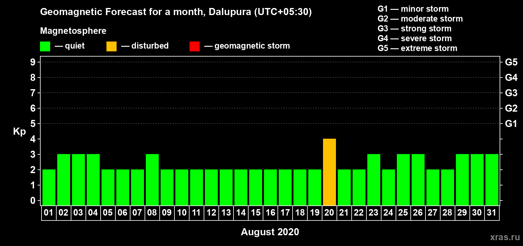 Geomagnetic storm forecast in Dalupura for Aug 01, 2020