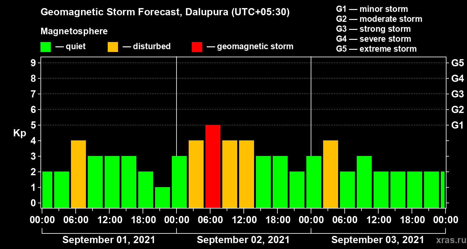 Geomagnetic storm forecast in Dalupura for Sep 01, 2021