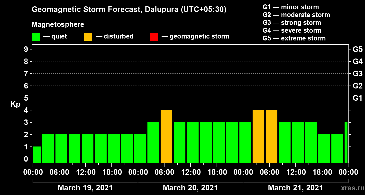 Geomagnetic storm forecast in Dalupura for Mar 19, 2021