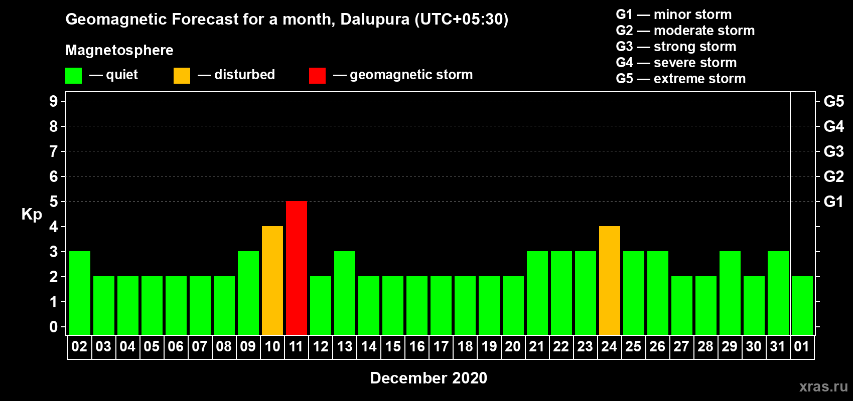 Geomagnetic storm forecast in Dalupura for Dec 02, 2020