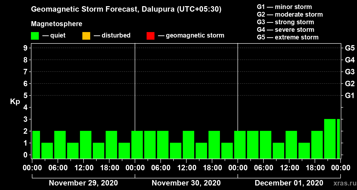 Geomagnetic storm forecast in Dalupura for Nov 29, 2020