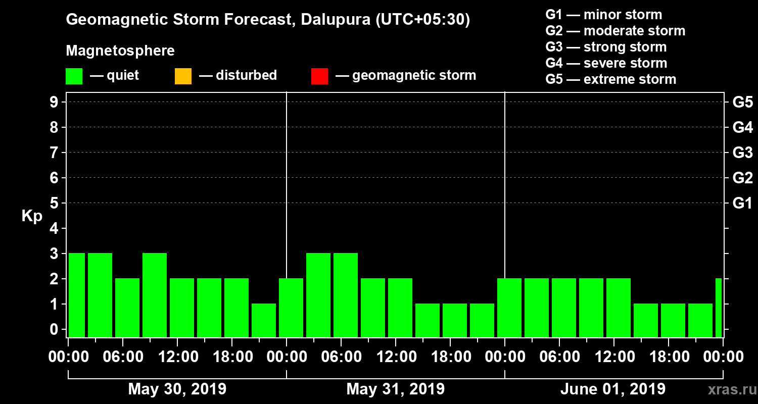 Geomagnetic storm forecast in Dalupura for May 30, 2019