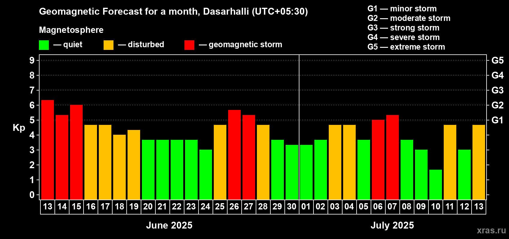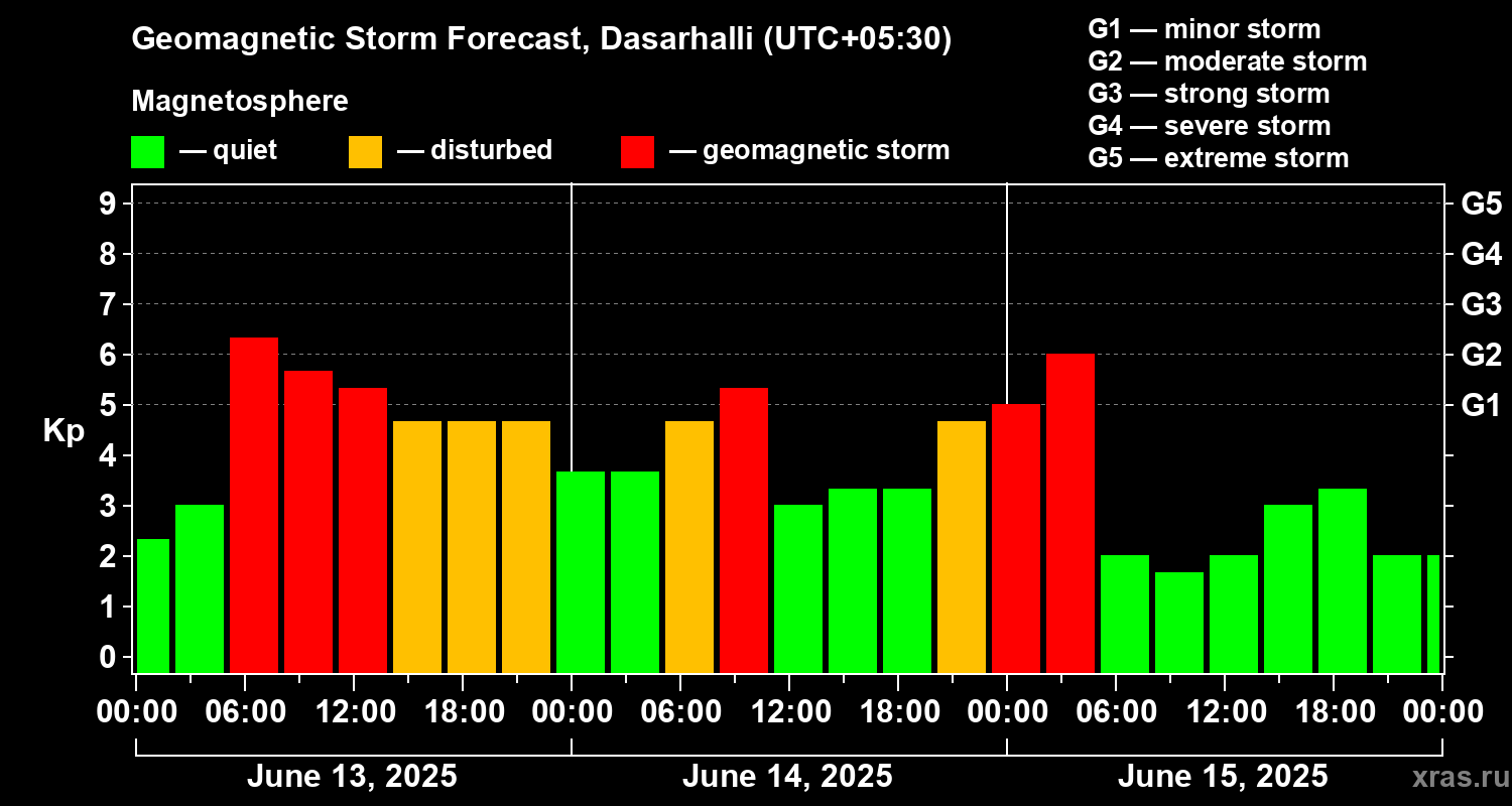 Geomagnetic storm forecast in Dasarhalli for Jun 13, 2025