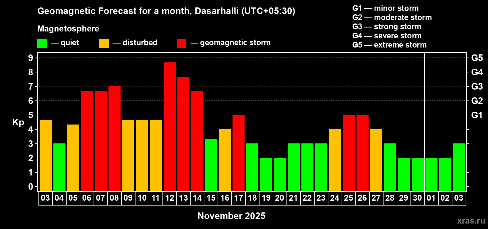 Geomagnetic storm forecast in Dasarhalli for Nov 03, 2025