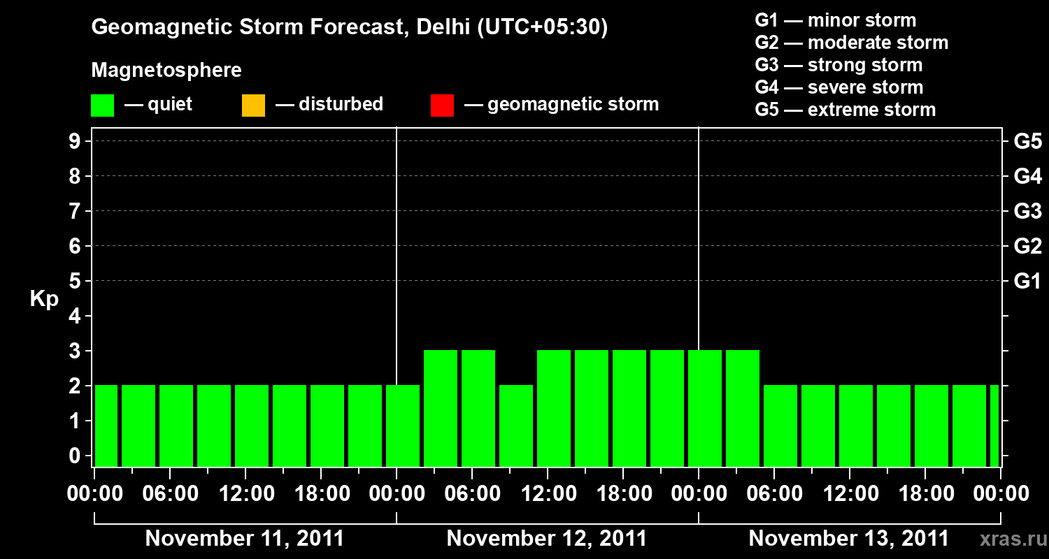 Geomagnetic storm forecast in Delhi for Nov 11, 2011