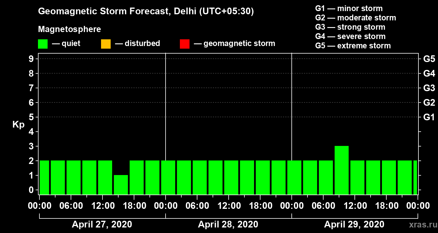 Geomagnetic storm forecast in Delhi for Apr 27, 2020