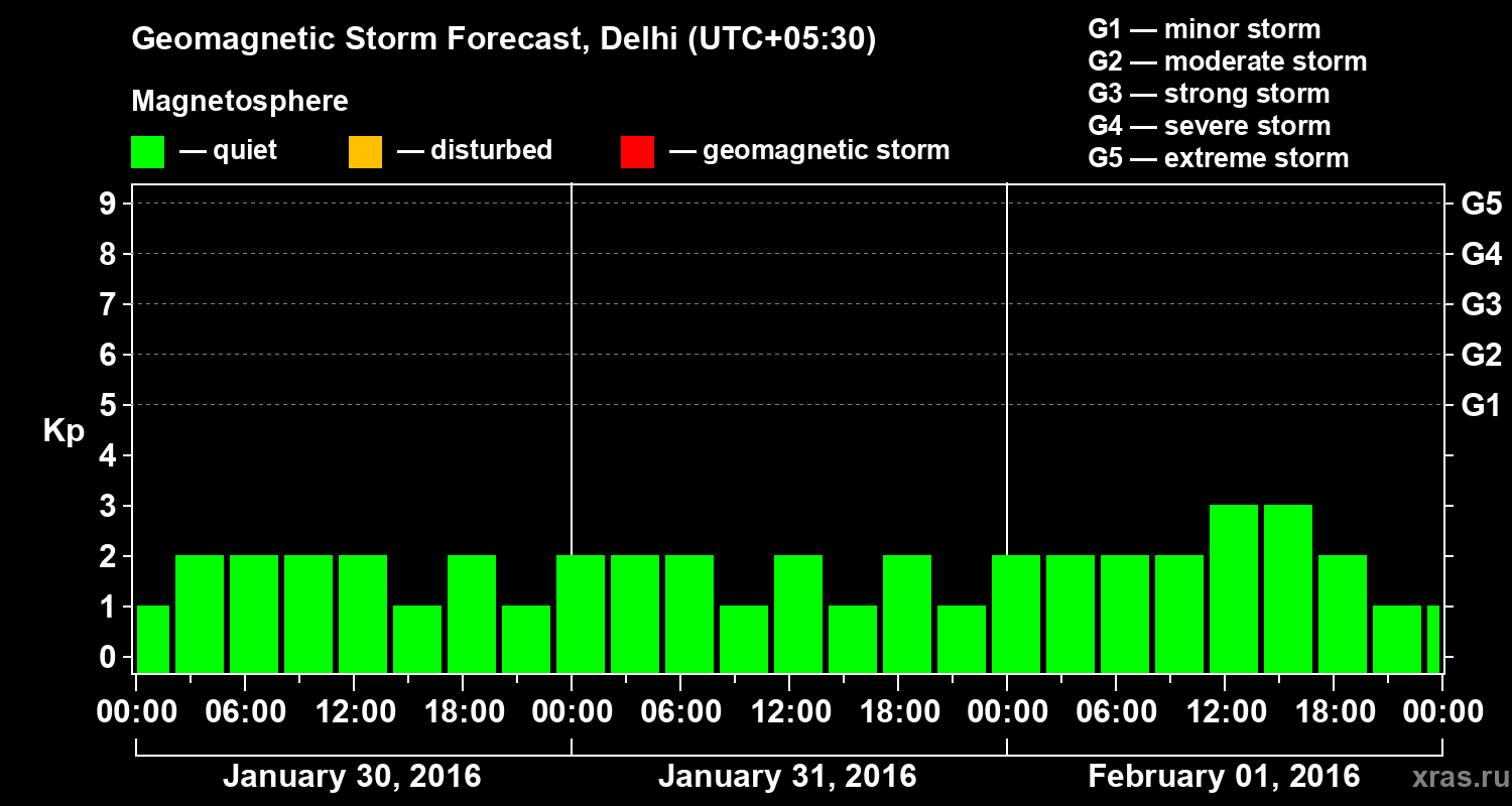 Geomagnetic activity forecast in Delhi — Jan 30, 2016