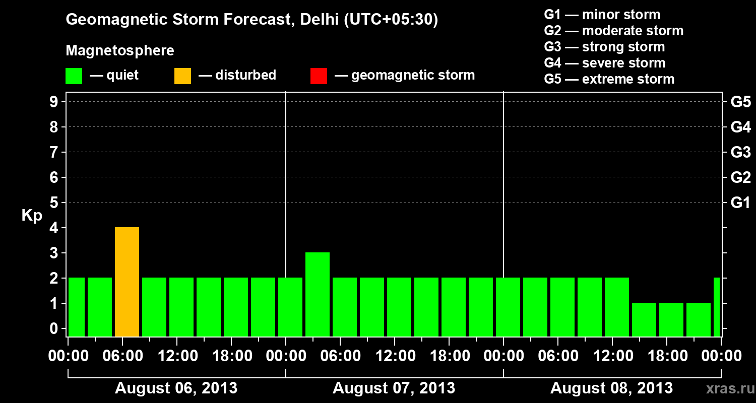 Geomagnetic storm forecast in Delhi for Aug 06, 2013
