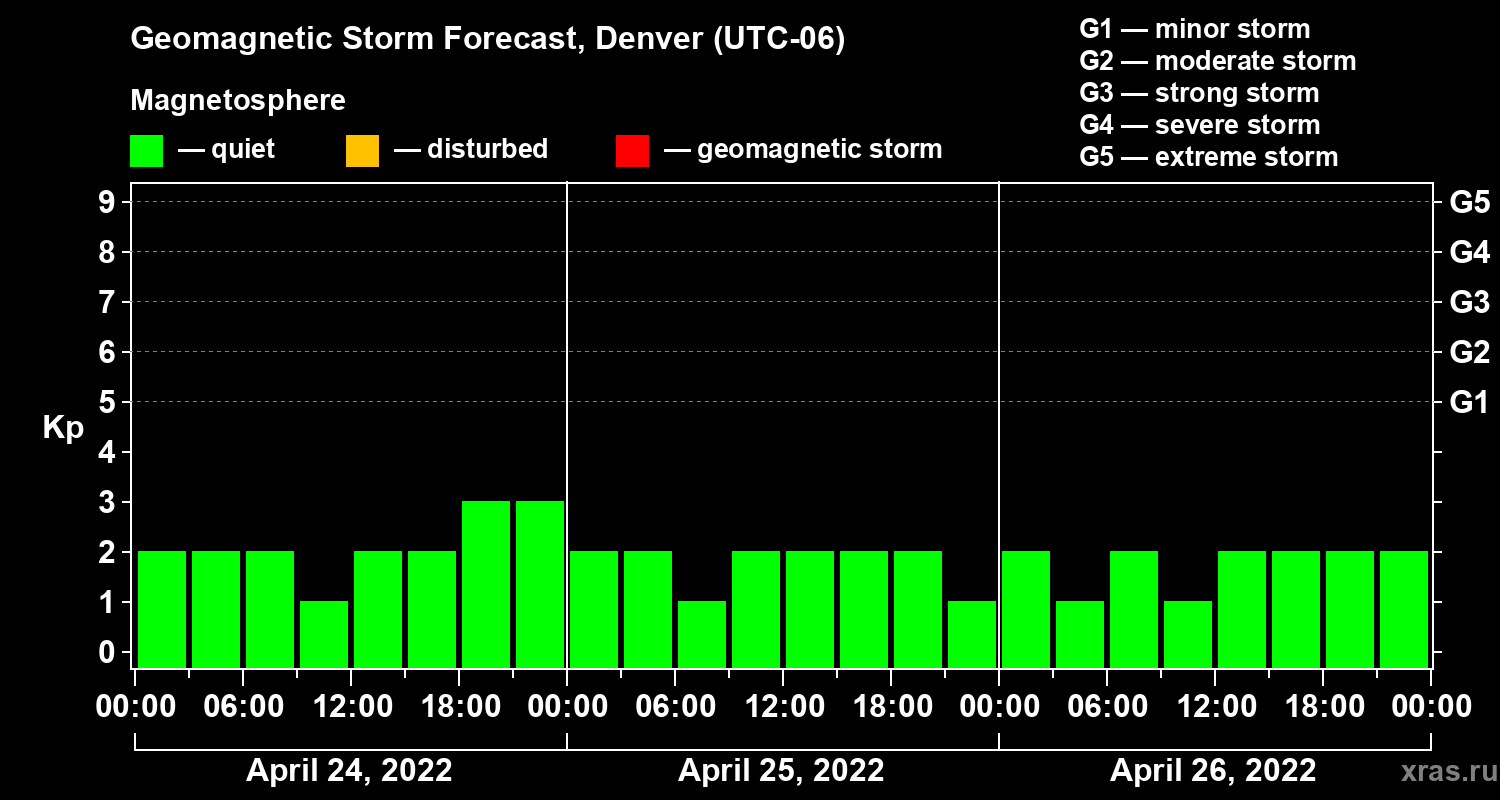 Geomagnetic storm forecast in Denver for Apr 24, 2022