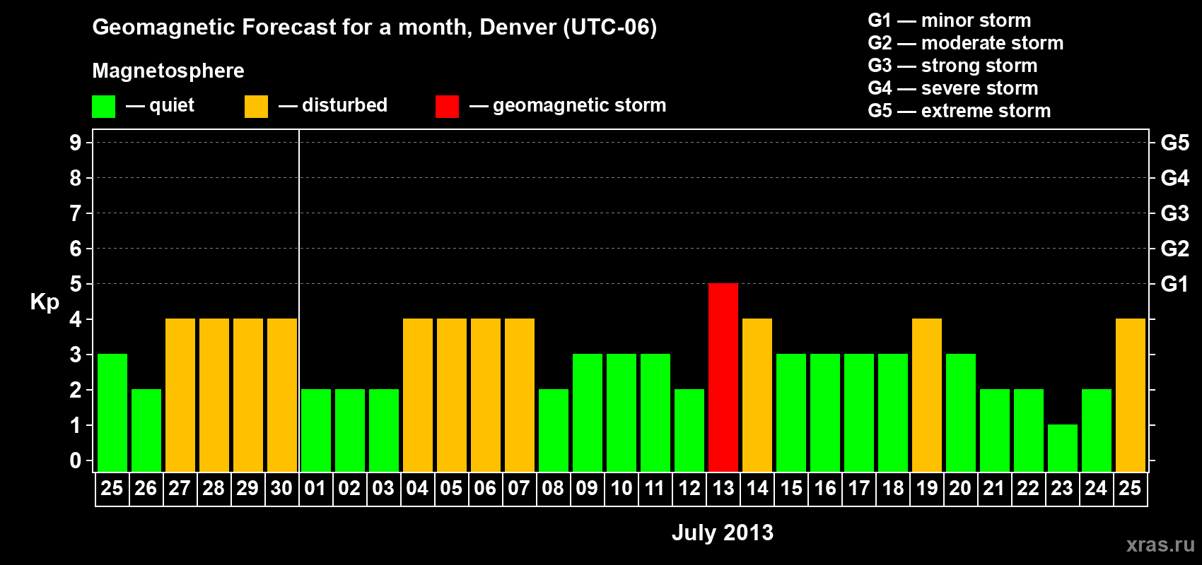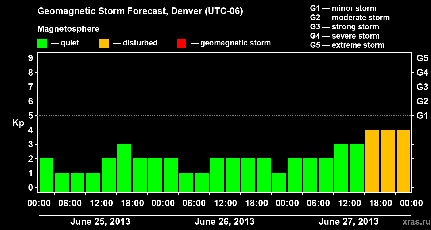 Geomagnetic storm forecast in Denver for Jun 25, 2013