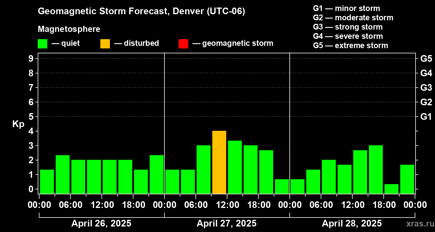 Geomagnetic storm forecast in Denver for Apr 26, 2025