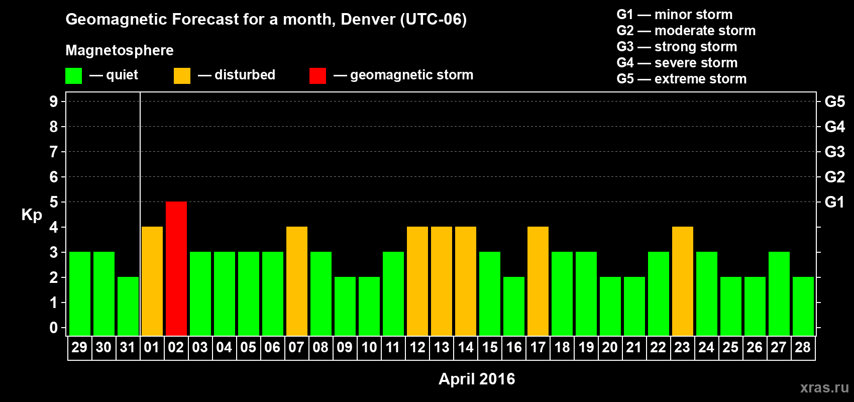 Geomagnetic storm forecast in Denver for Mar 29, 2016