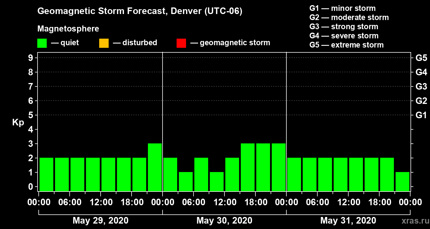 Geomagnetic storm forecast in Denver for May 29, 2020