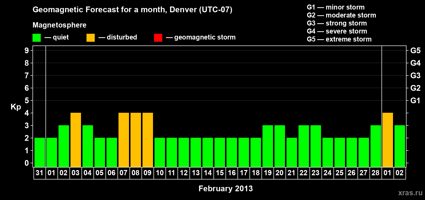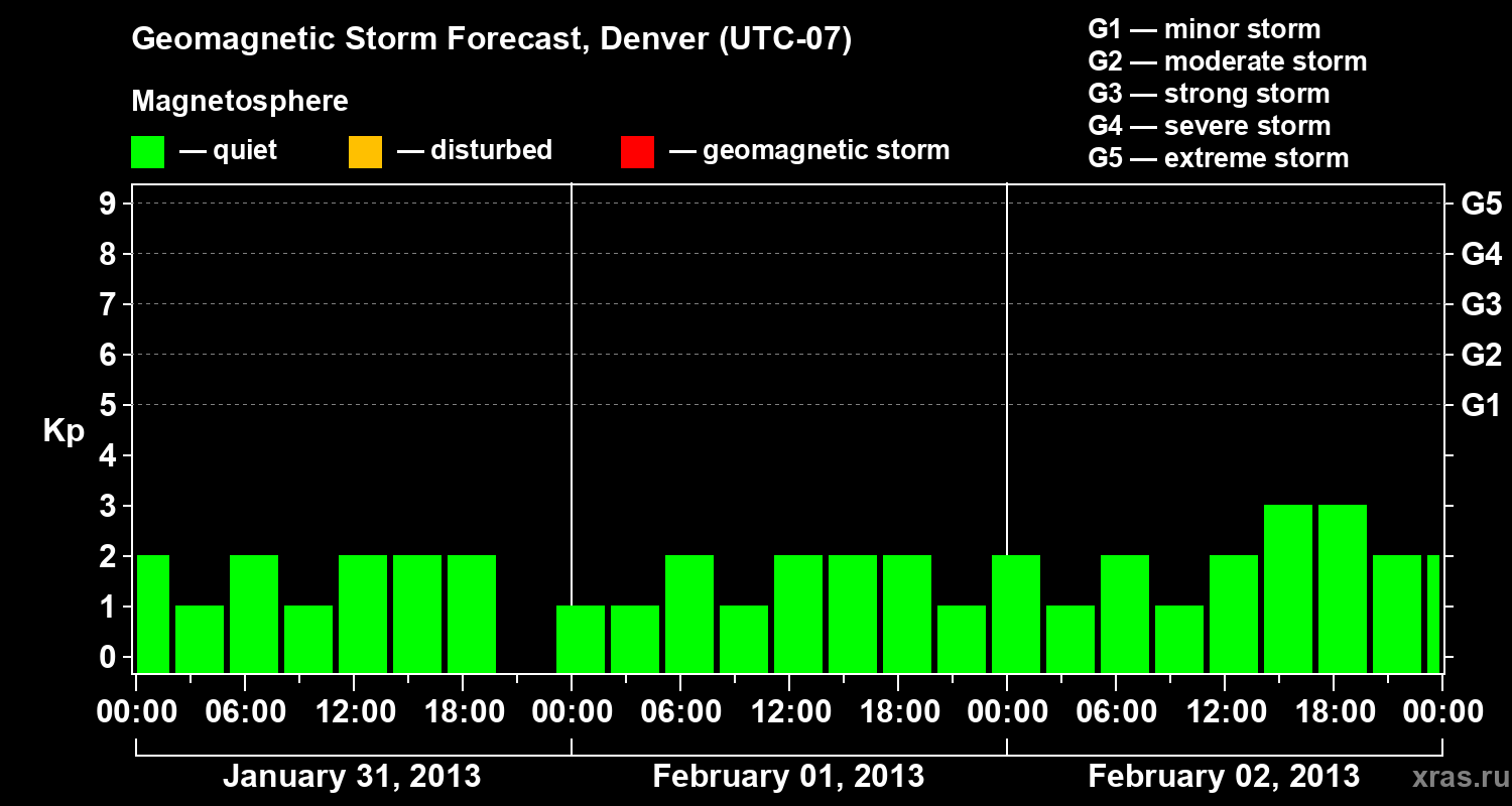 Geomagnetic storm forecast in Denver for Jan 31, 2013