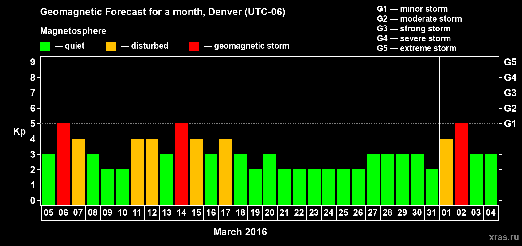 Geomagnetic storm forecast in Denver for Mar 05, 2016
