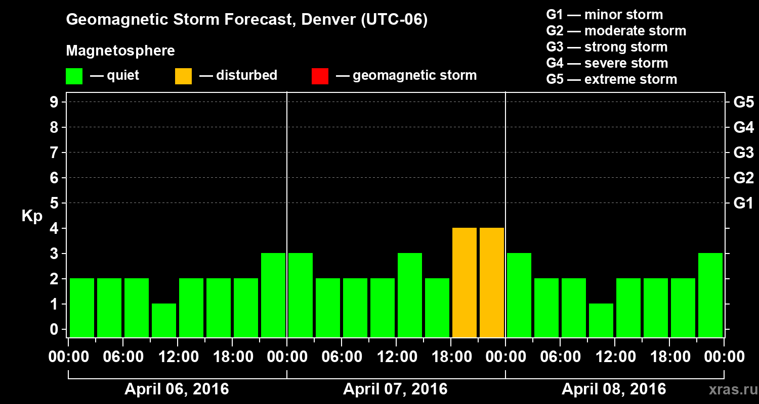 Geomagnetic storm forecast in Denver for Apr 06, 2016