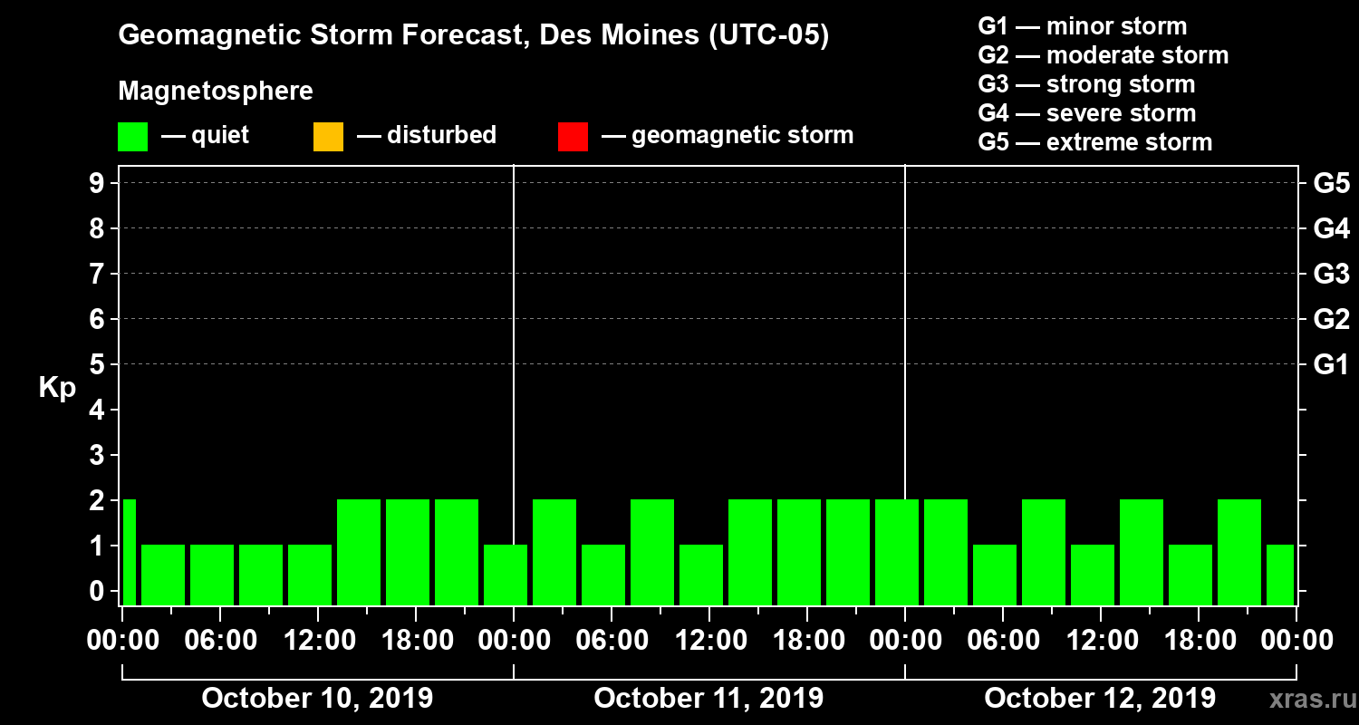 Geomagnetic storm forecast in Des Moines for Oct 10, 2019