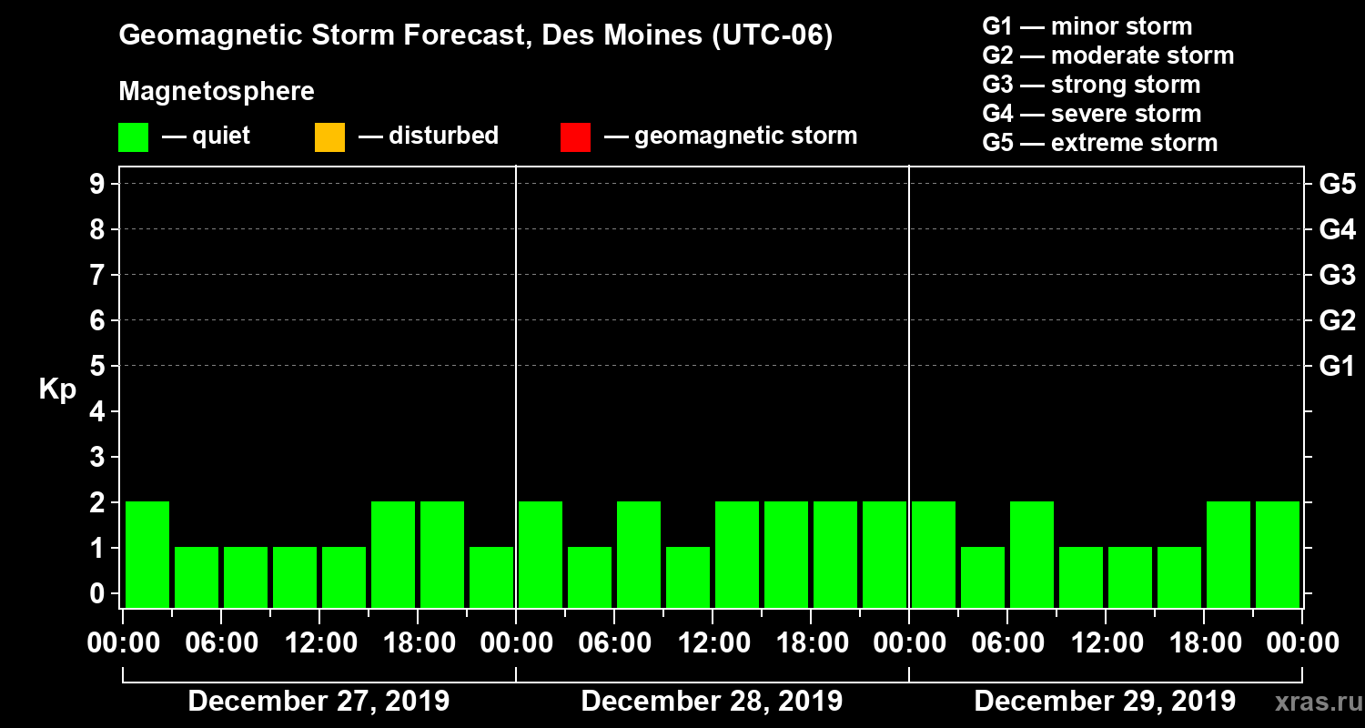 Geomagnetic storm forecast in Des Moines for Dec 27, 2019